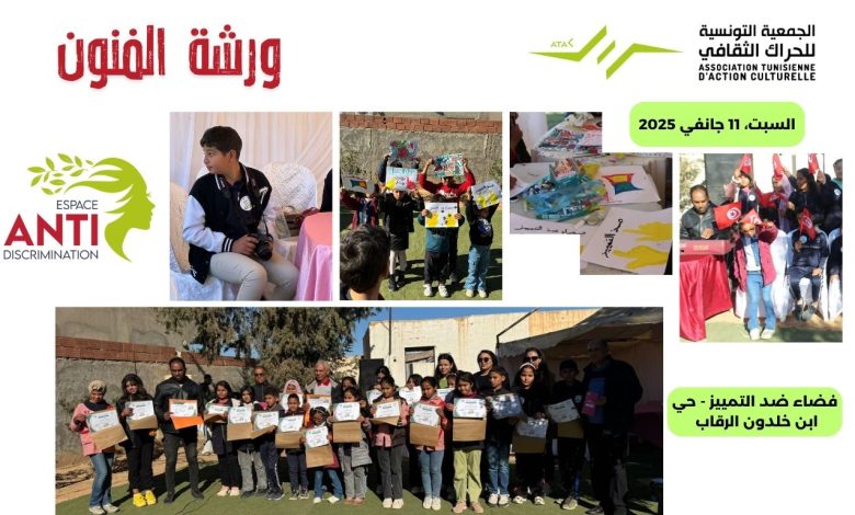 - Expositions temporaires des œuvres de jeunes artistes et habitant-es talentueux du cité Ibn Khaldoun Regueb à l’Espace Anti Discrimination